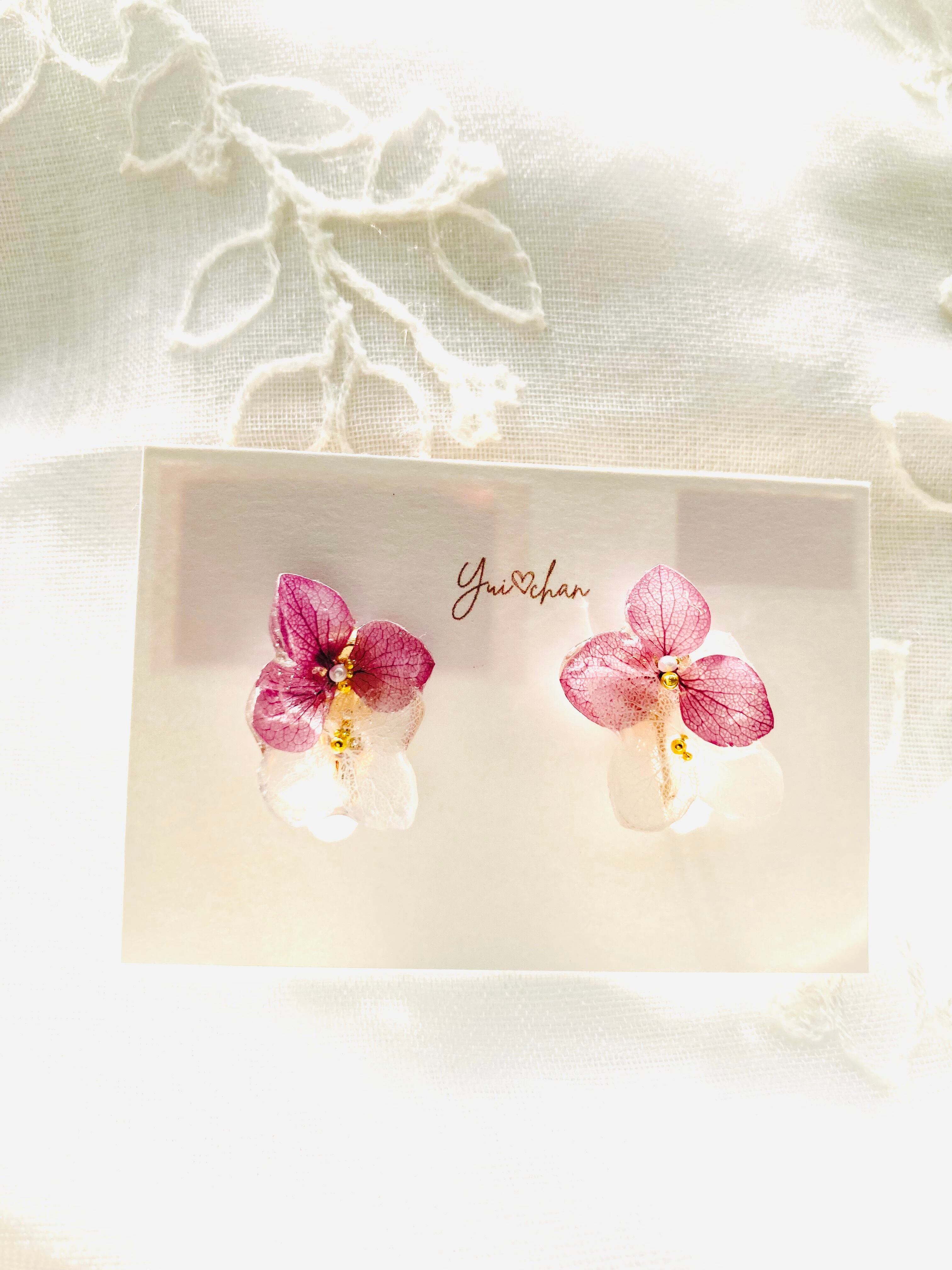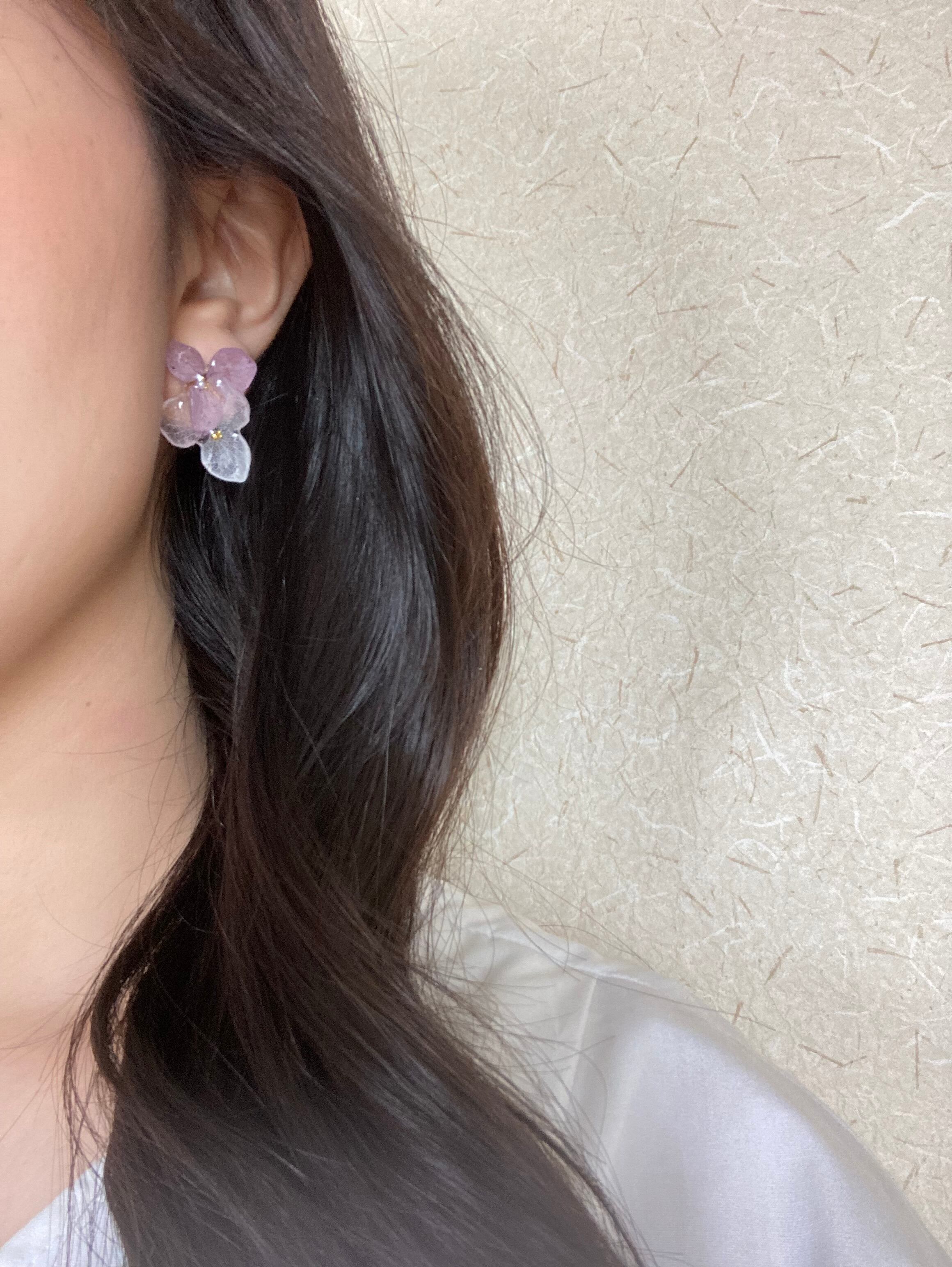 ♯002 紫陽花 パープル×ホワイト イヤリング