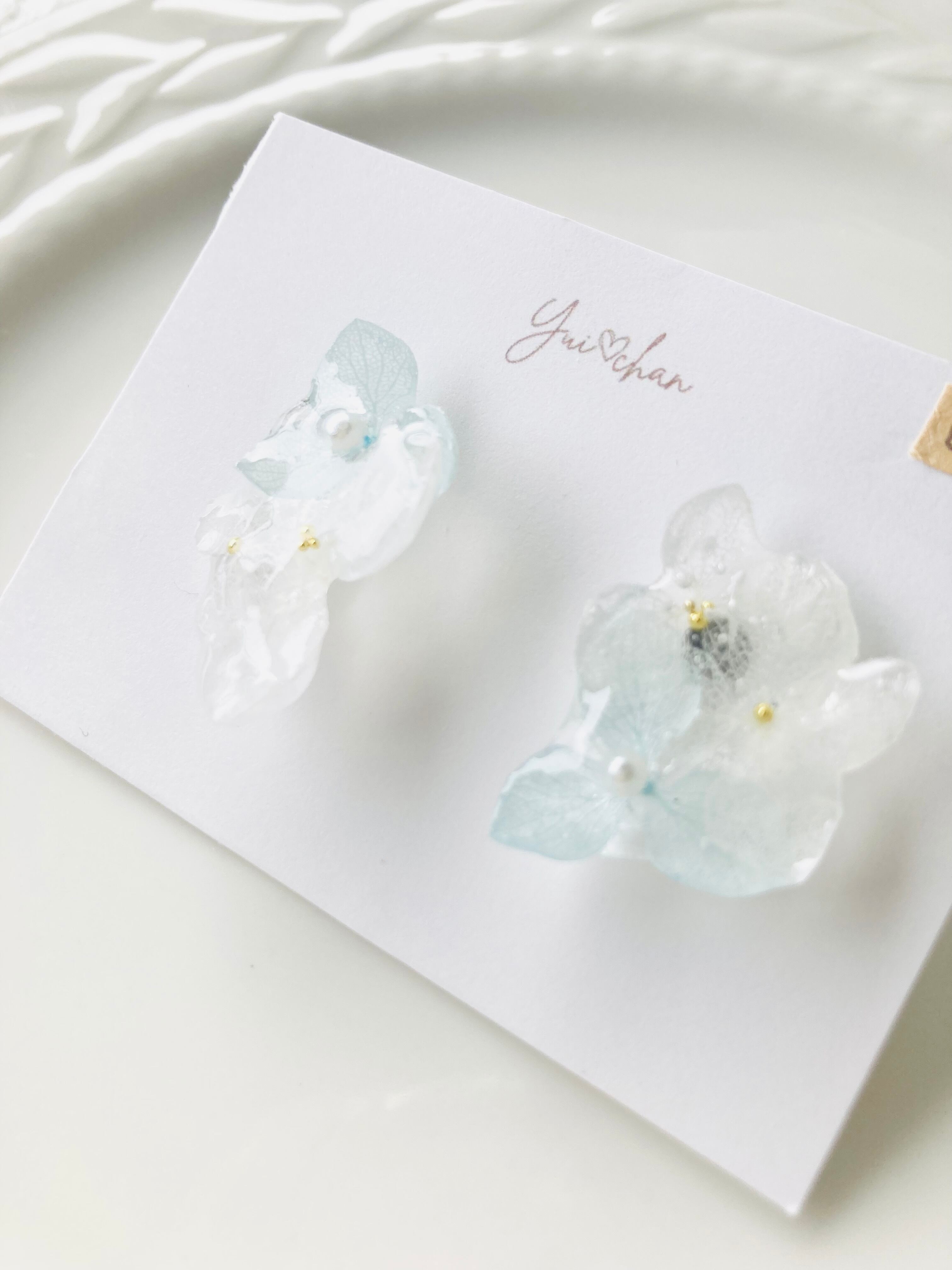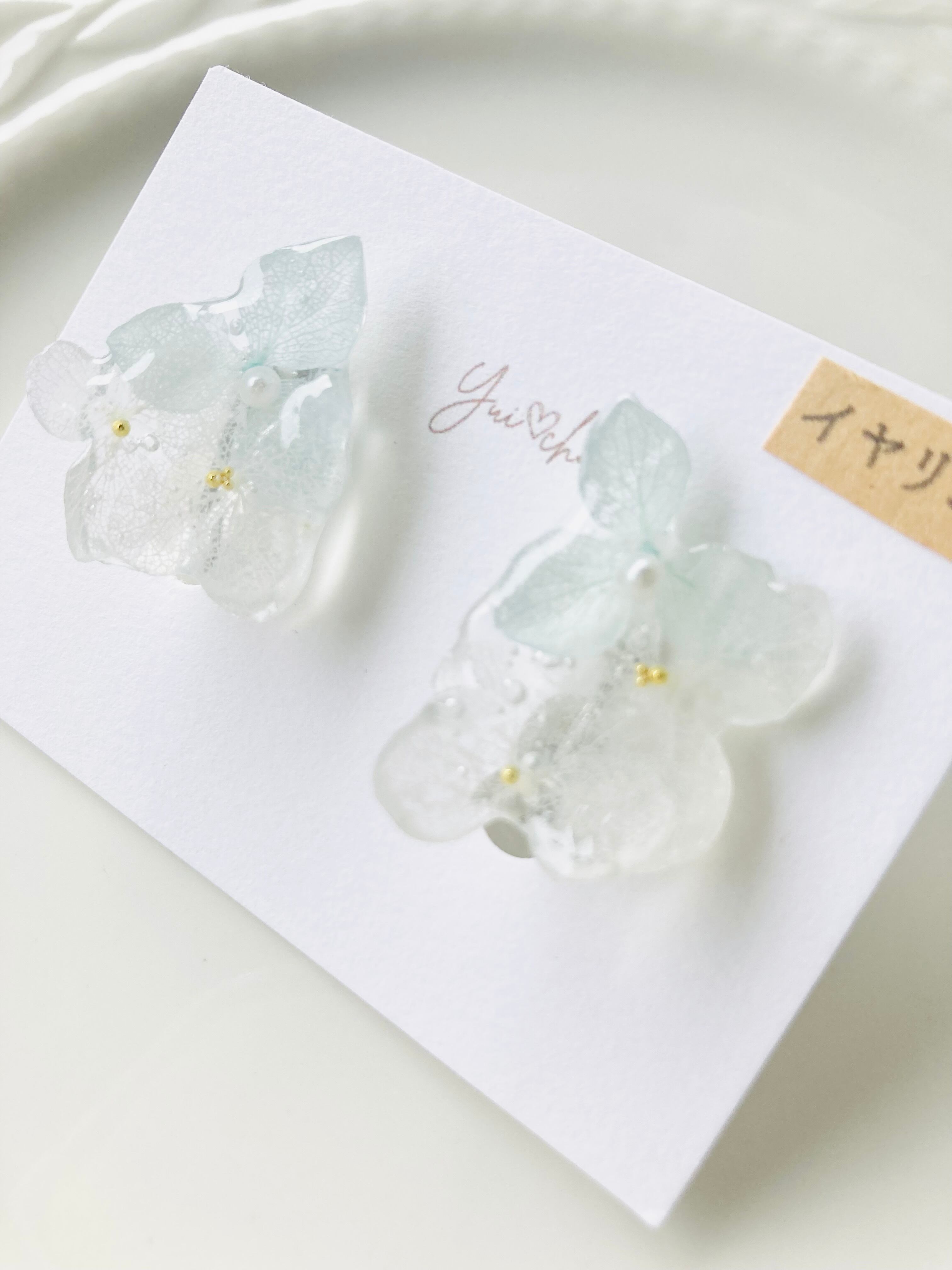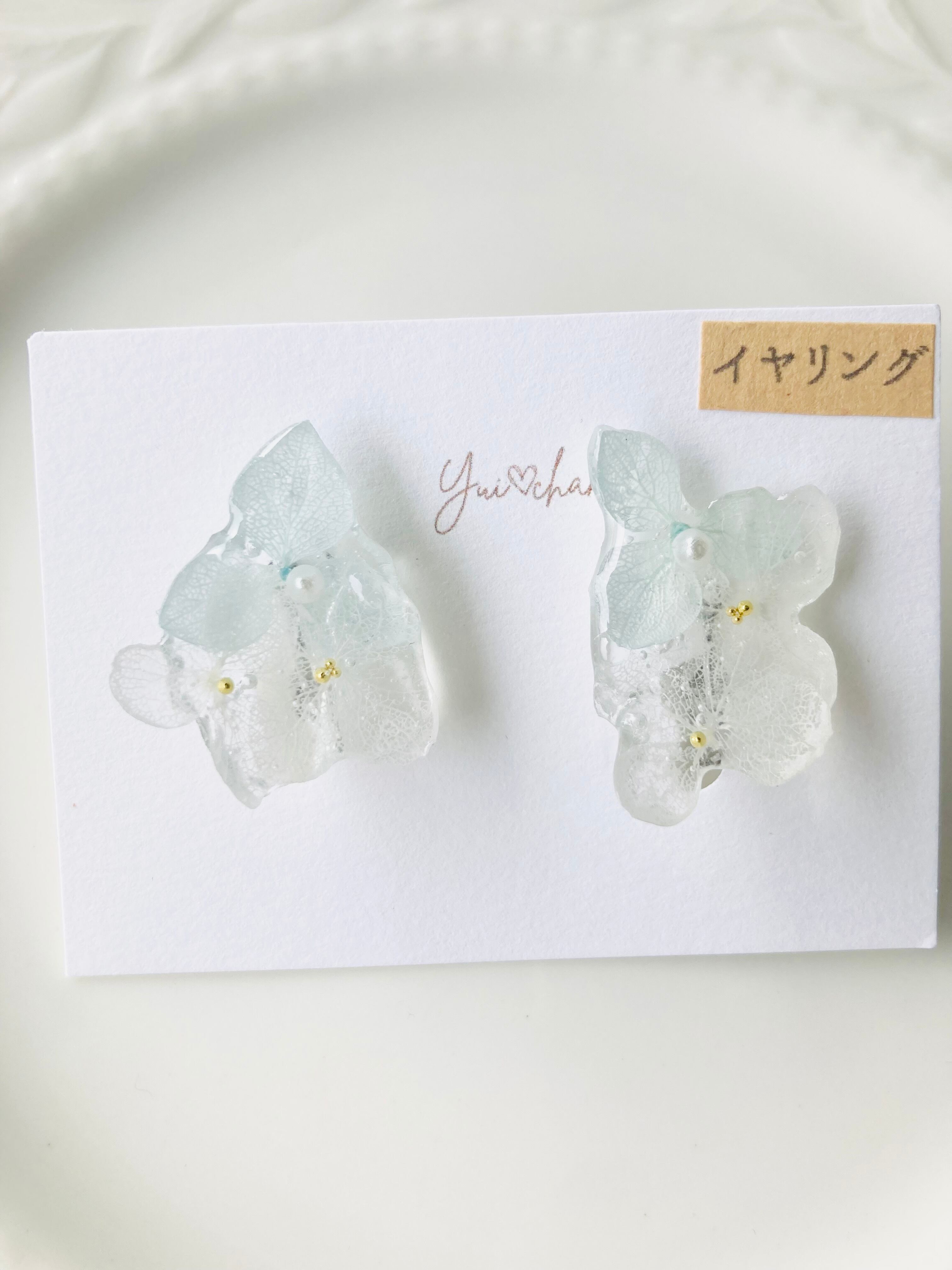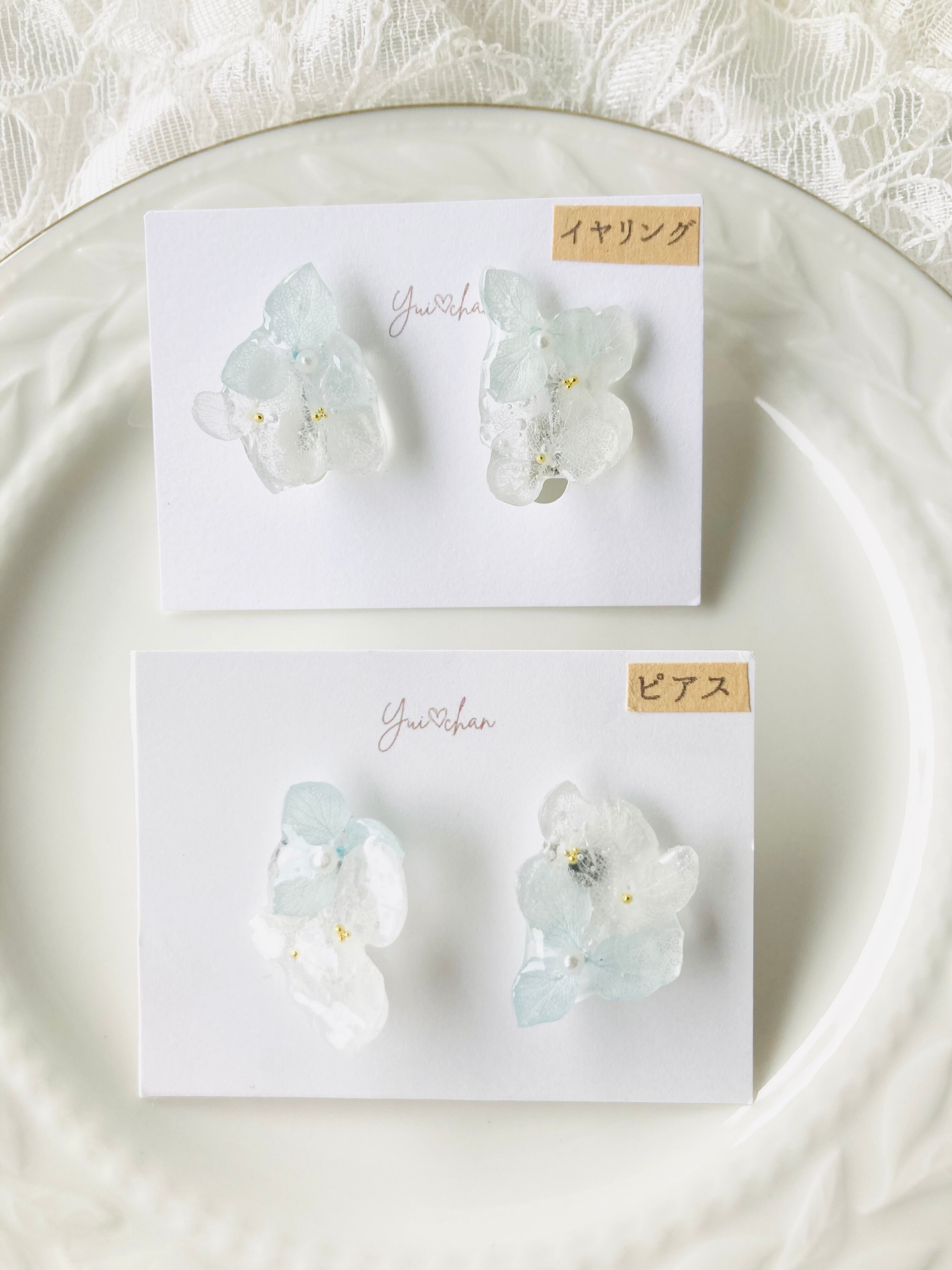 #004 紫陽花 ベビーブルー×ホワイト ピアス・イヤリング