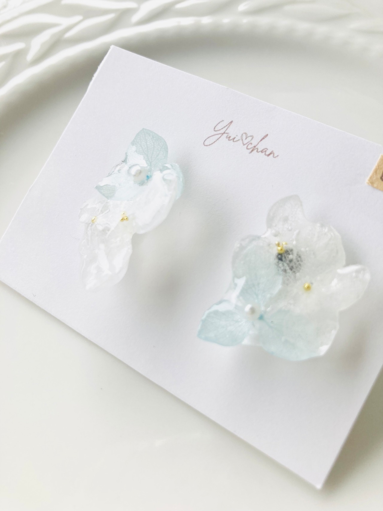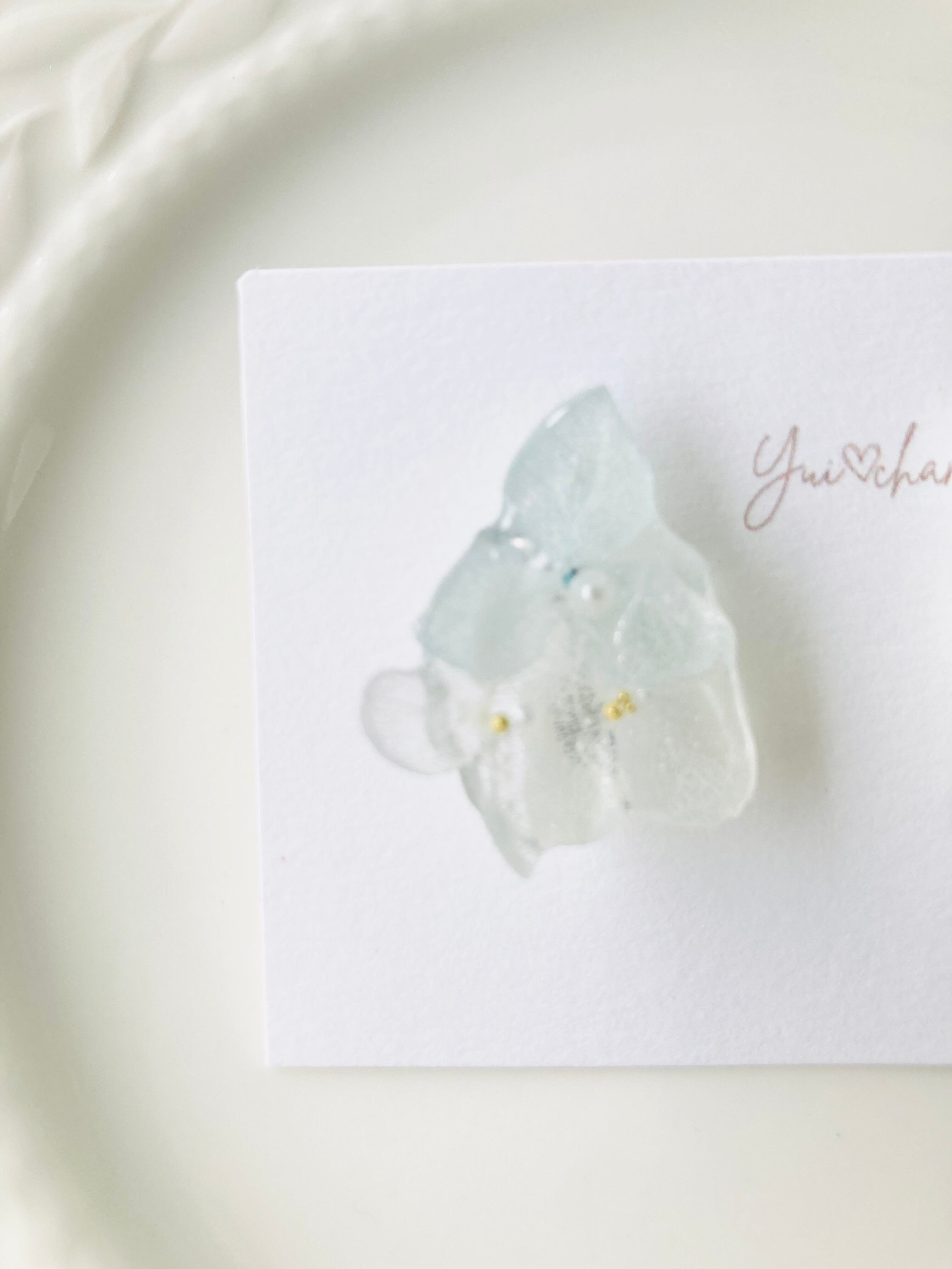 本物のあじさいをレジンコーティングした作品です。
