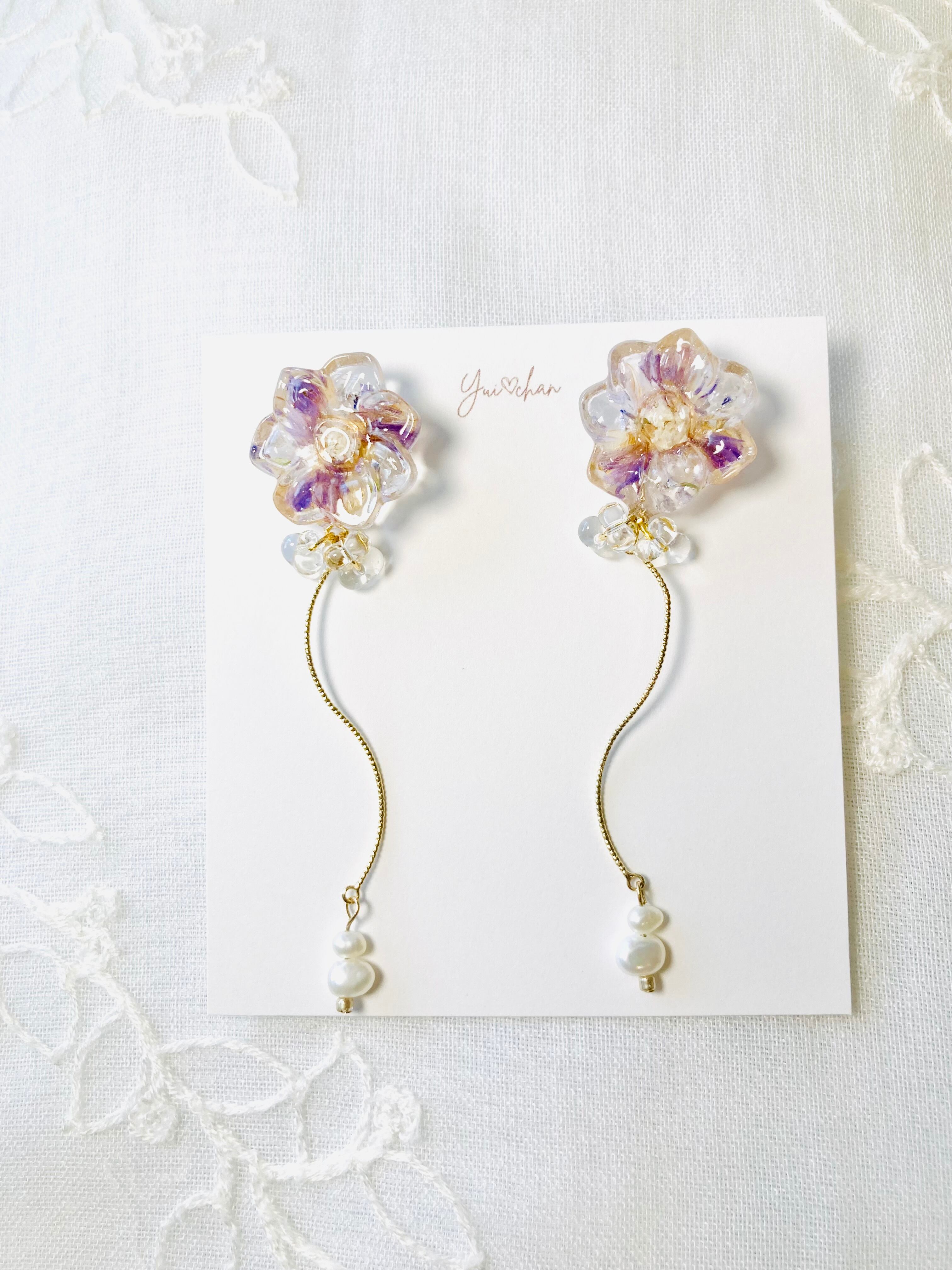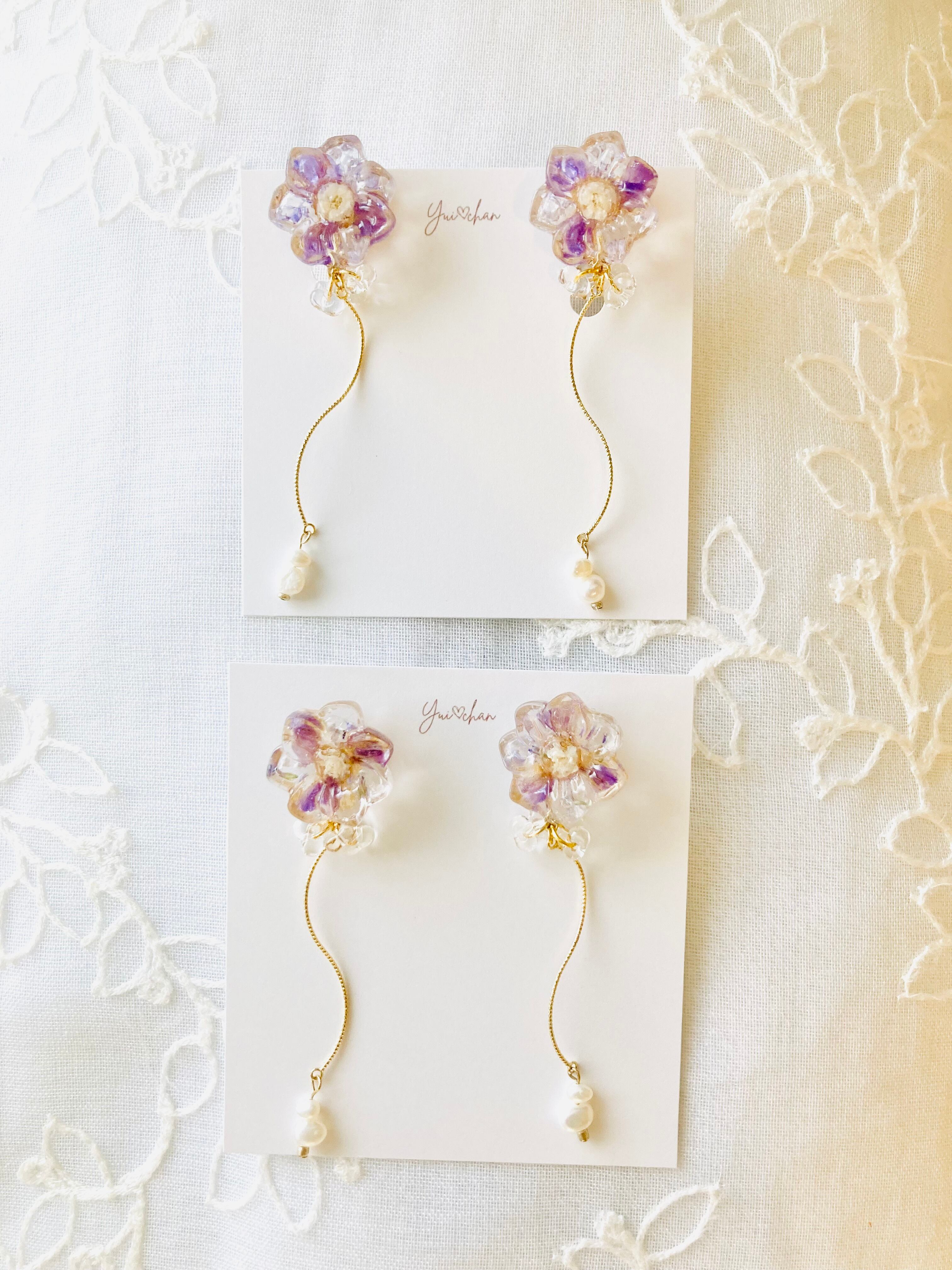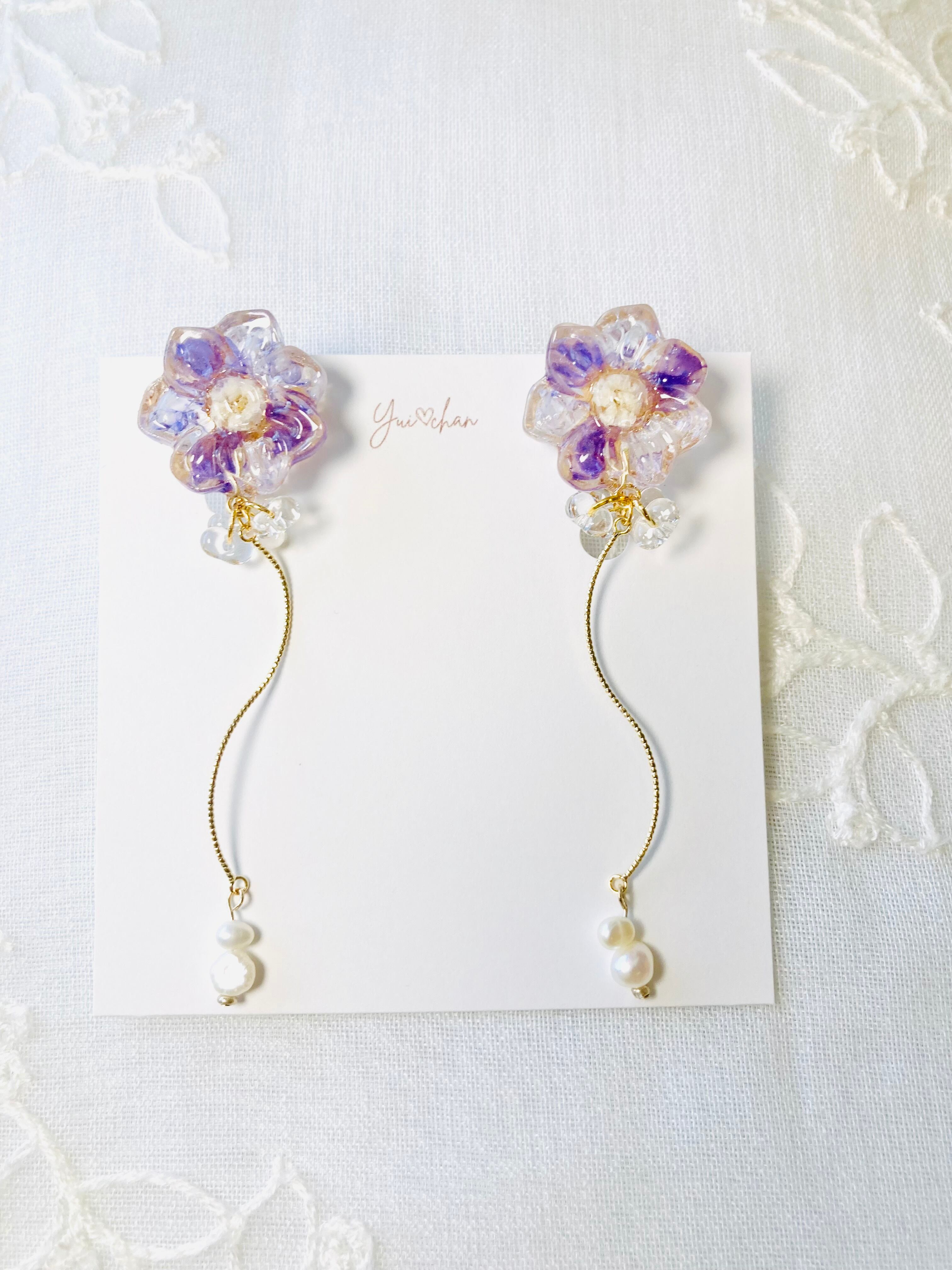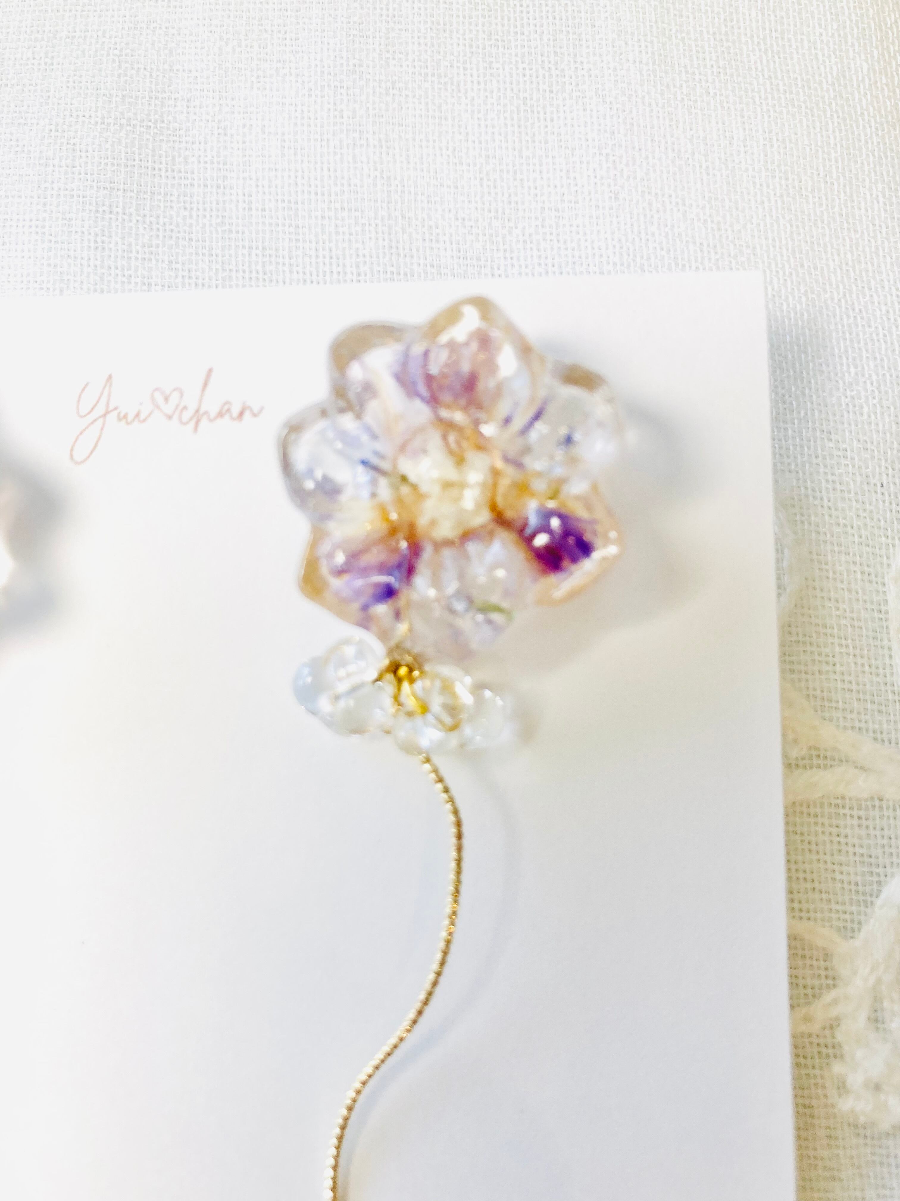 #029 竜胆色(りんどういろ)のお花 レジン ピアス・イヤリング
