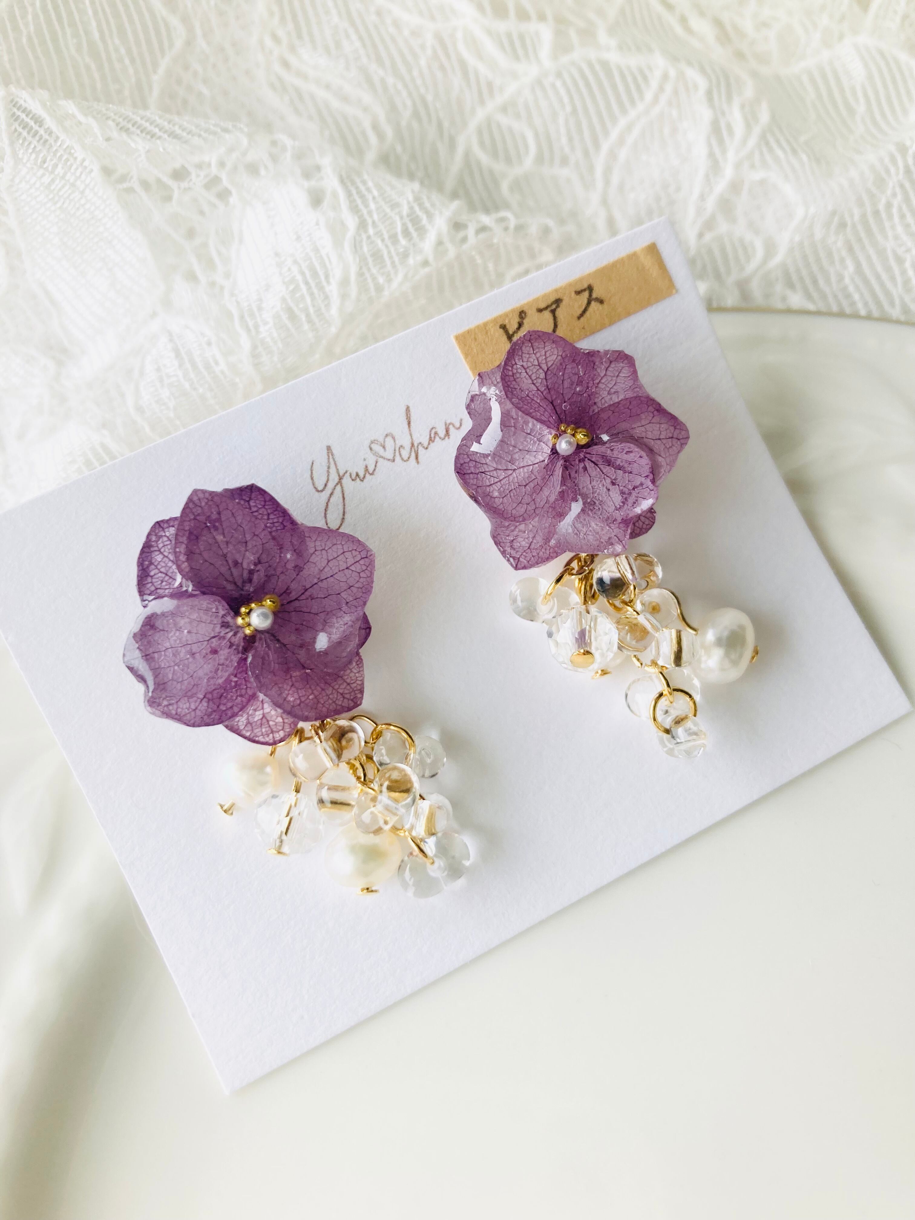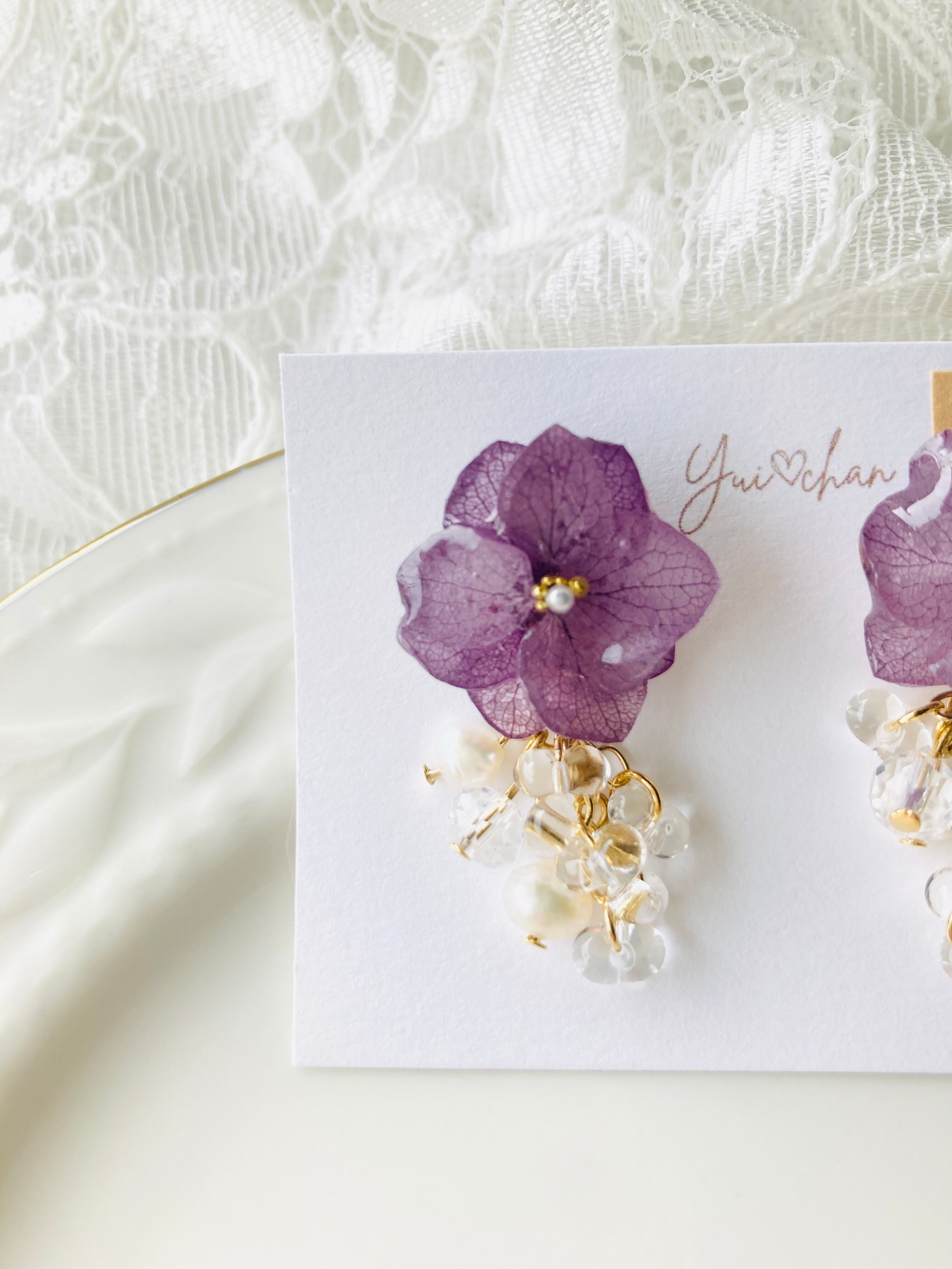 パープルの紫陽花の花びらを使って八重咲のお花を創作した作品です。