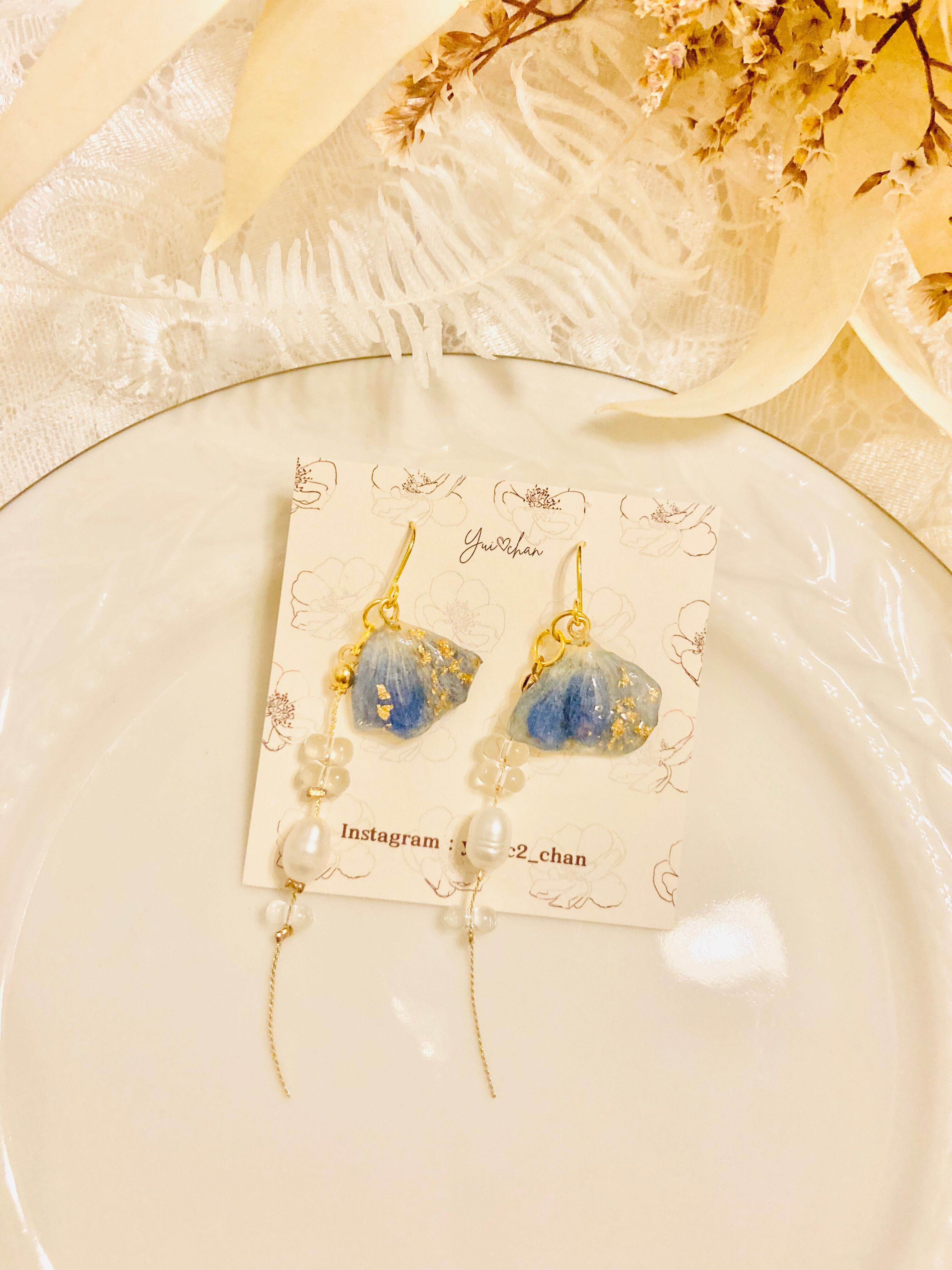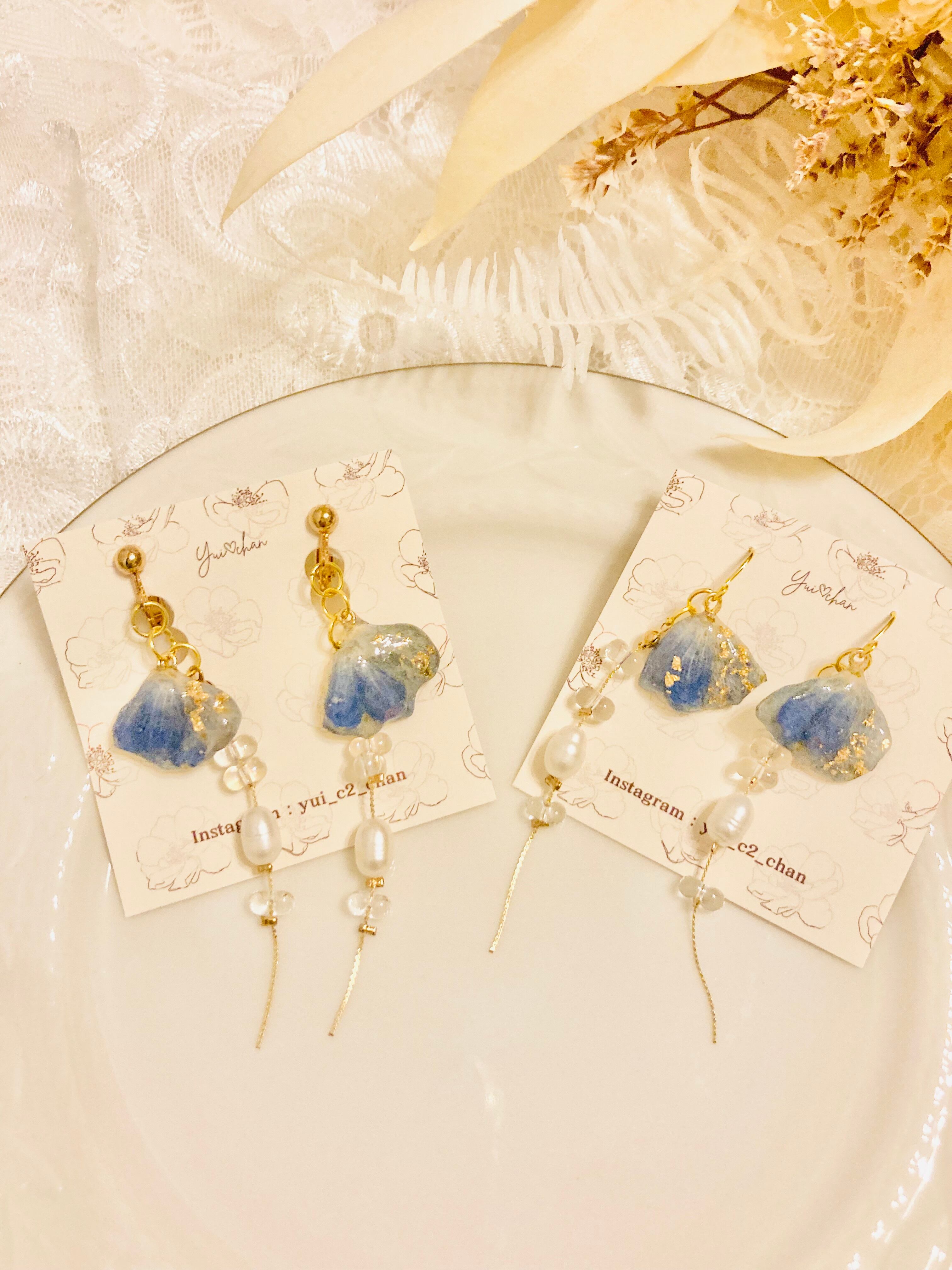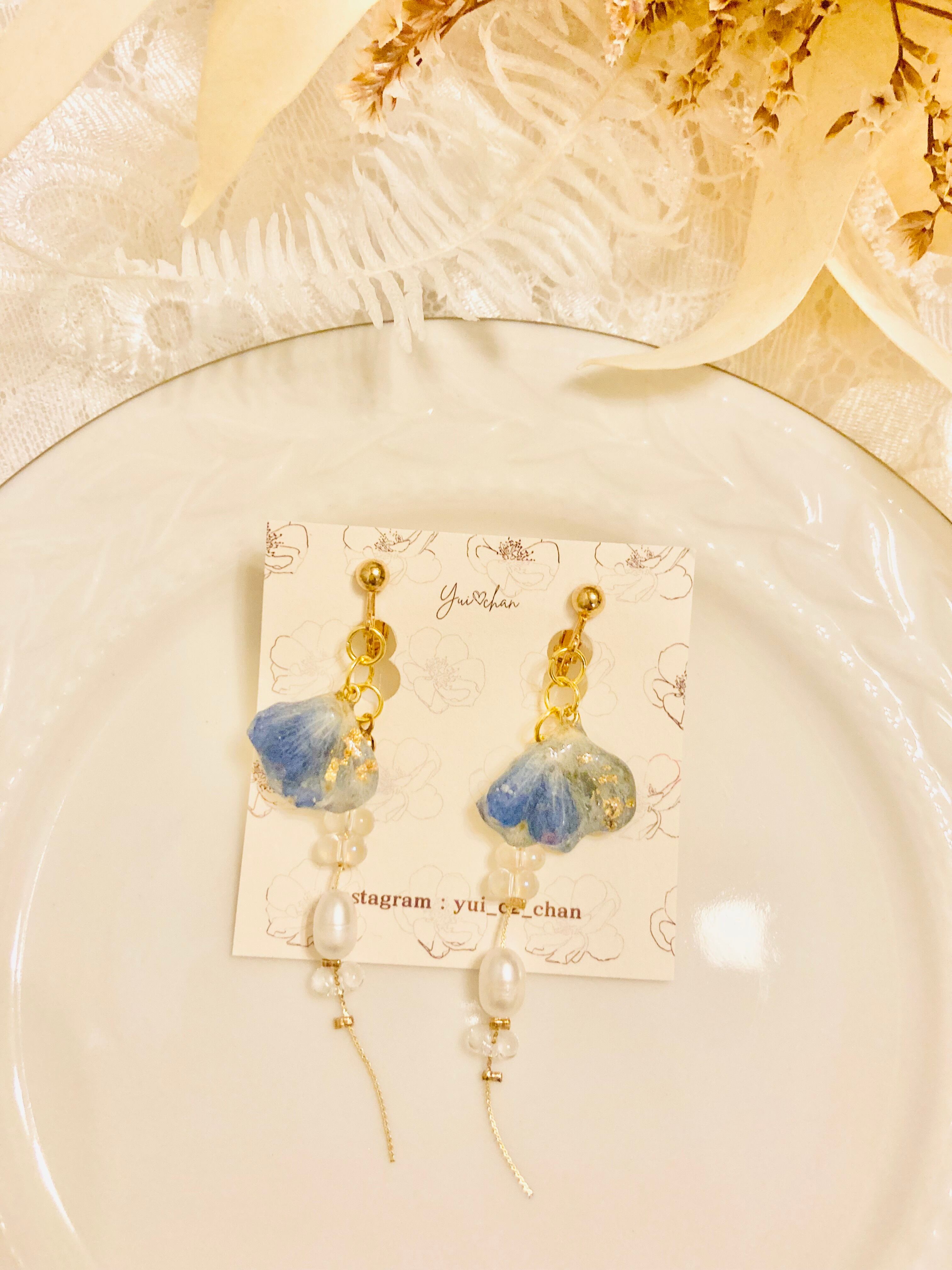 *デルフィニウムをイヤーアクセサリーに仕立てました。